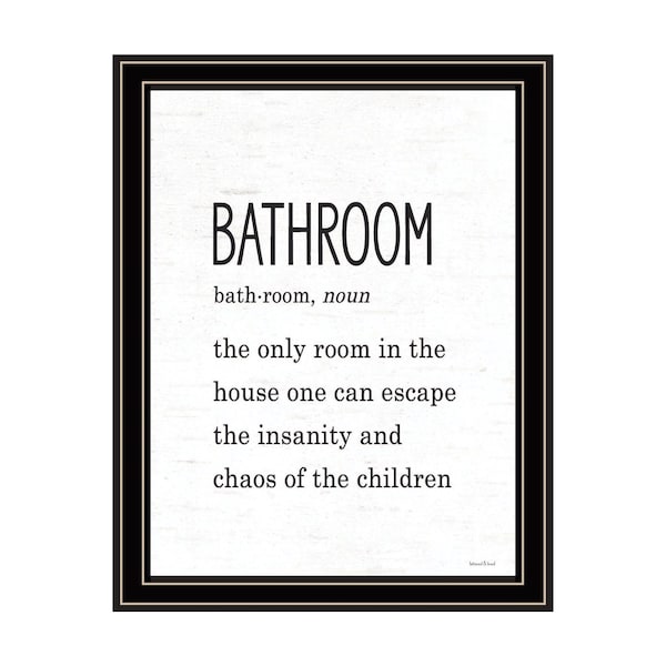 The bathroom escape black framed print bathroom wall art is the perfect decorative accessory for your home. This print is a visual artistic expression that allows you to decorate your space in style. Reproduced for you on wood, this hanging decorative accent will be a trendy and fashionable way to dress your walls in a rustic and modern farmhouse vibe. Hang on your wall to add some up to date fashion and decoration. Instantly liven up your space with this art that brings color and dimension to your walls. 18-inch H x 14-inch W x 1-inch D
