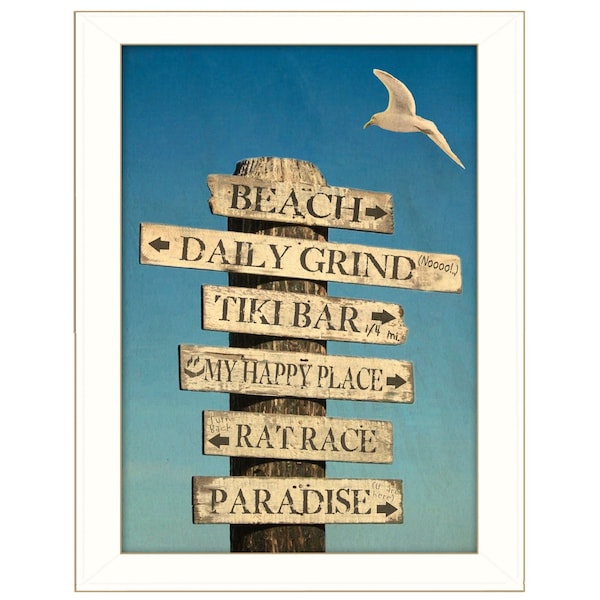 The beach directional 3 white framed print wall art is the perfect decorative accessory for your home. This print is a visual artistic expression that allows you to decorate your space in style. Reproduced for you on paper, this hanging decorative accent will be a trendy and fashionable way to dress your walls. Adding this hanging wall art to your space to make your room feel more finished and attractive. Instantly liven up your space with this art that brings color and dimension to your walls. 26-inch H x 20-inch W x 1-inch D