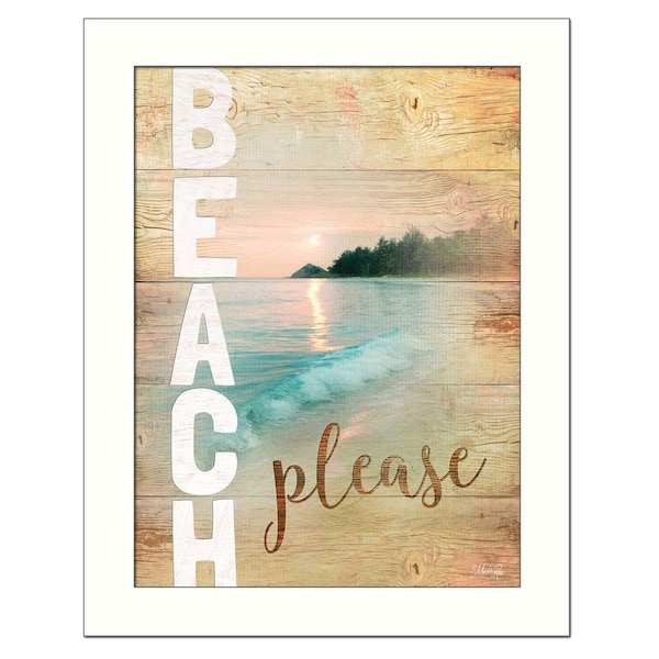 The beach please 3 white framed print wall art is the perfect decorative accessory for your home. This print is a visual artistic expression that allows you to decorate your space in style. Reproduced for you on wood, this hanging decorative accent will be a trendy and fashionable way to dress your walls in a rustic and modern farmhouse vibe. Hang on your wall to add some up to date fashion and decoration. Utilize this opportunity to create a focal point in the room with this fabulous wall decor option. 18-inch H x 14-inch W x 1-inch D