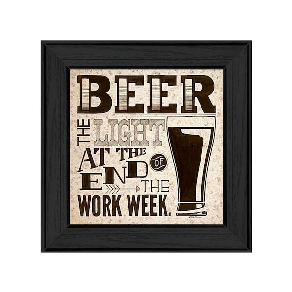 This beer work week black framed print wall art will add a beautiful decorative accent to your decor. This print is a visual artistic expression that allows you to decorate your space in style. Reproduced for you on paper, this hanging decorative accent will be a trendy and fashionable way to dress your walls. Hang on your wall to add some up to date fashion and decoration. Instantly liven up your space with this art that brings color and dimension to your walls. 15-inch H x 15-inch W x 1-inch D