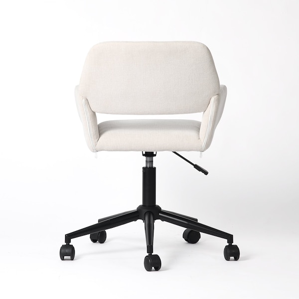 This beige and black adjustable height swivel rolling office chair is a top performer when it comes to style and support. This stylish armchair is upholstered in soft chenille and features a iron frame to provide sturdiness when the chair is in use. The seat swivels and is height adjustable, so you can customize it how you like. Designed with a combination of practicality and good looks, this chair is just what you need to complete your office or home office. 33.27-inch h x 22.64-inch w x 22.24-inch d.