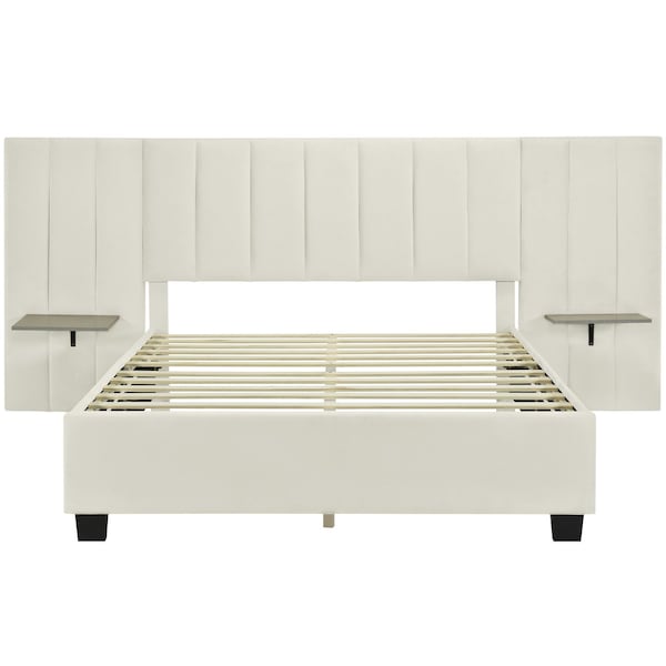 Beige Tufted Velvet Upholstered Queen Bed Frame