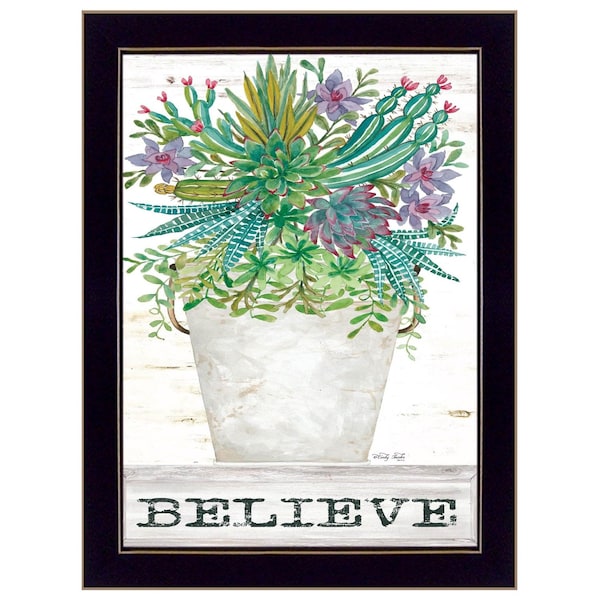 Bring some sizzle to your space with this eye-catching believe succulents 1 black framed print wall art. This print is a visual artistic expression that allows you to decorate your space in style. Reproduced for you on wood, this hanging decorative accent will be a trendy and fashionable way to dress your walls in a rustic and modern farmhouse vibe. Hang on your wall to add some up to date fashion and decoration. Utilize this opportunity to create a focal point in the room with this fabulous wall decor option. 18-inch H x 14-inch W x 1-inch D