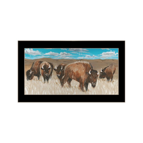 Bring some sizzle to your space with this eye-catching bison herd black framed print wall art. This print is a visual artistic expression that allows you to decorate your space in style. Reproduced for you on wood, this hanging decorative accent will be a trendy and fashionable way to dress your walls in a rustic and modern farmhouse vibe. Adding this hanging wall art to your space to make your room feel more finished and attractive. Utilize this opportunity to create a focal point in the room with this fabulous wall decor option. 11-inch H x 20-inch W x 1-inch D