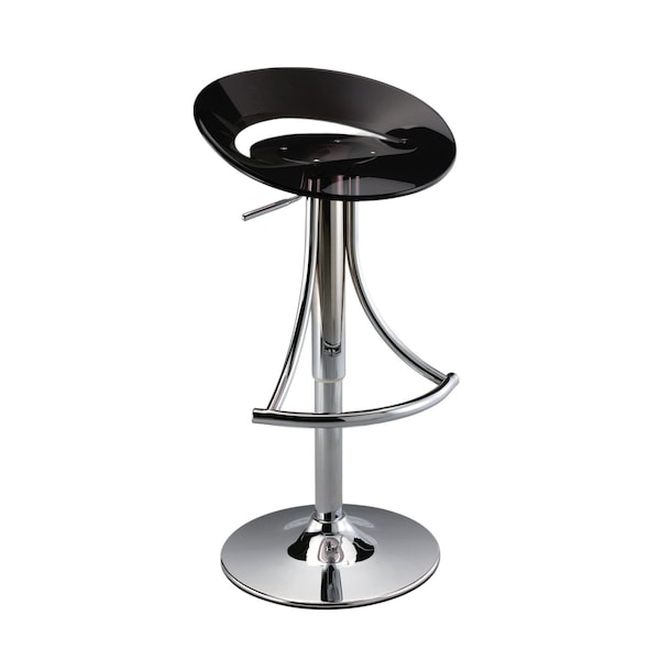 Comfort and design come together nicely in this black and silver metal and heavy duty plastic low back adjustable height bar chair. A silver metal frame is finished off with a black plastic seat that is the epitome of quality construction and design. Designed with a footrest for comfort and convenience. A low back mixed with a round shaped seat design makes this chair both comfortable and fashionable. 23.5-inch h x 17.5-inch w x 17.5-inch d.