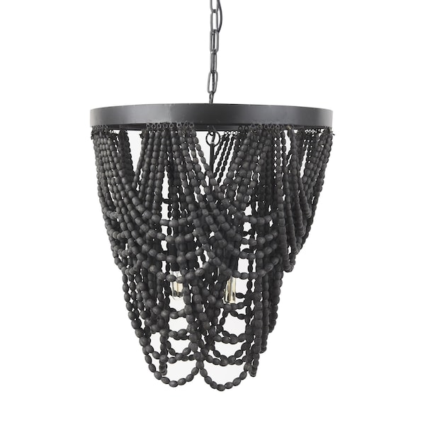 Black Empire Three Light Metal and Beads Dimmable Chandelier