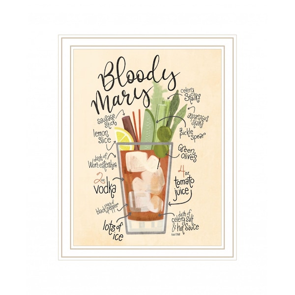 Bring some sizzle to your space with this eye-catching bloody mary 2 white framed print wall art. This print is a visual artistic expression that allows you to decorate your space in style. Reproduced for you on wood, this hanging decorative accent will be a trendy and fashionable way to dress your walls in a rustic and modern farmhouse vibe. Adding this hanging wall art to your space to make your room feel more finished and attractive. Instantly liven up your space with this art that brings color and dimension to your walls. 18-inch H x 14-inch W x 1-inch D