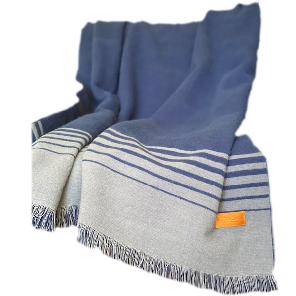 This blue and gray woven microfiber striped throw blanket with fringe is a stylish addition to any sofa. Features a woven striped design that offers sumptuous softness and texture that you'll cherish for years to come. Made from microfiber this blanket will make a great addition to any room it's added to. Add extra texture to your decor and turn your room into an inviting space. This cozy throw blanket is sure to become your go-to couch companion. 74-inch H x 50-inch W x 0.1-inch D