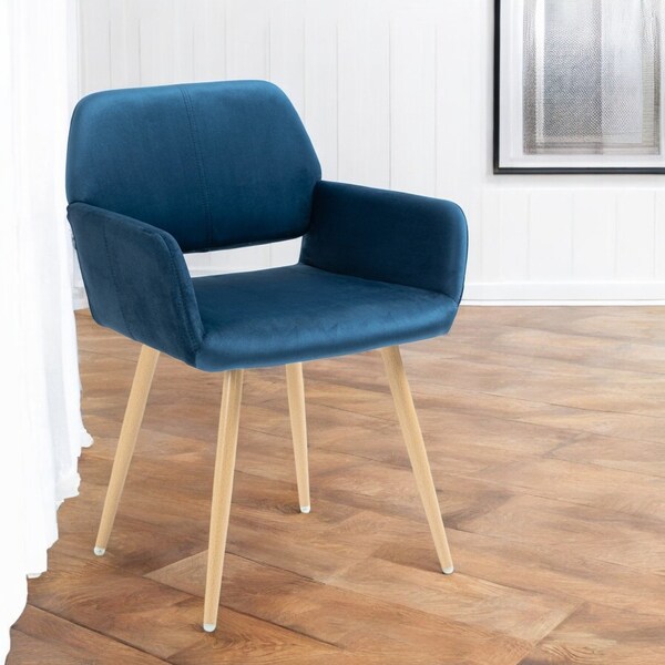 Make your dining experience the best with this blue upholstered velvet open back dining chair. Complete with open back, this chair not only looks good but is comfortable. Dining chairs are a great way to compliment your kitchen or dining room but can also be used in the foyer, hallway, or any room you might need extra seating. 30.7" H x 22" W x 20.8" D