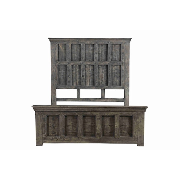Create a haven for relaxation and sweet dreams with this fabulous brown carved geometric distressed solid wood queen bed frame. We spend so much time in our bedrooms, thus making quality craftsmanship and good looks vitally important. The panel headboard and footboard feature gorgeous carved geometric detailing and a distressed finish that give this bed a regal yet casual look and feel. This bed is the perfect way to make your bedroom comfortable and inviting. 72-inch H x 89-inch W x 69-inch D