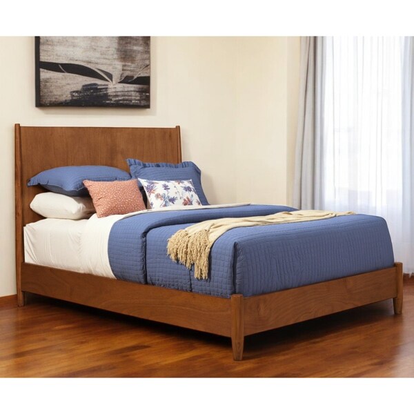 Drift off to a great night's sleep with the luxuriously stylish brown solid wood full bed frame. We spend so much time in our bedrooms, thus making quality craftsmanship and good looks vitally important. This bed is the perfect way to make your bedroom comfortable and inviting. Inspired by mid-century design elements, this bed will add a clean and fashionably look to your space. 52-inch h x 81-inch w x 59-inch d.