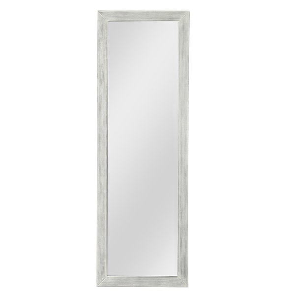 The perfect way to add a rustic touch to your home, this Brushed White Wooden Mirror will elevate and brighten any space you place it in. The mirror has a rectangular shape and is encased in a wooden frame which has a brushed white varnish on it. The edges of the frame are slightly beveled on the inside which adds a nice touch of depth to the overall look. There is a removable black colored stand that you can use for to help the mirror stand up. You can use this mirror anywhere in your home without worrying about any clashing colors or decor styles. Hang it up vertically or horizontally, the choice is yours! 64.2" H x 21.3" W x 1.2" D