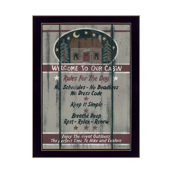 Bring some sizzle to your space with this eye-catching cabin rules 6 black framed print wall art. This print is a visual artistic expression that allows you to decorate your space in style. Reproduced for you on paper, this hanging decorative accent will be a trendy and fashionable way to dress your walls. Adding this hanging wall art to your space to make your room feel more finished and attractive. Instantly liven up your space with this art that brings color and dimension to your walls. 20-inch H x 14-inch W x 1-inch D