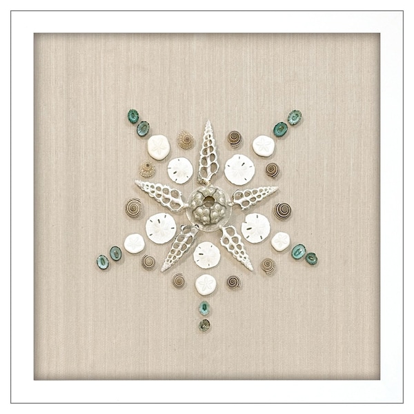 The caparazon white framed wall art is the perfect decorative accessory for your home. Reproduced for you on paper, this hanging decorative accent will be a trendy and fashionable way to dress your walls with a beachy coastal flair. Handcrafted, this square decor features a deep shadowbox style frame with mounted shells, starfish, and other sea creatures for a unique look. 20-inch H x 20-inch W x 3-inch D
