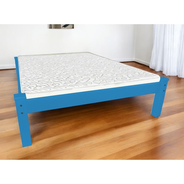 Caribbean Blue Solid Wood Queen Bed Frame