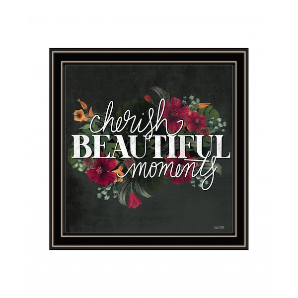 The cherish the moments 1 black framed print wall art is the perfect decorative accessory for your home. This print is a visual artistic expression that allows you to decorate your space in style. Reproduced for you on wood, this hanging decorative accent will be a trendy and fashionable way to dress your walls in a rustic and modern farmhouse vibe. Adding this hanging wall art to your space to make your room feel more finished and attractive. Utilize this opportunity to create a focal point in the room with this fabulous wall decor option. 14-inch H x 14-inch W x 1-inch D