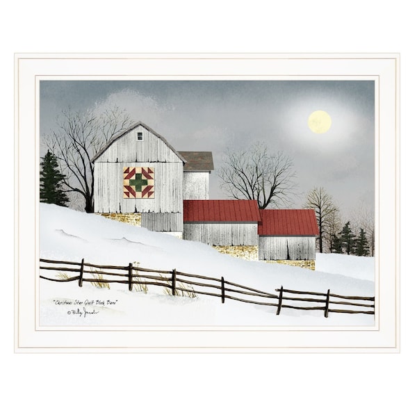 Set a festive christmas mood with this christmas star quilt block barn 1 white framed print wall art. This print is a visual artistic expression that allows you to decorate your space in style. Reproduced for you on paper, this hanging decorative accent will be a trendy and fashionable way to dress your walls. Hang on your wall to add some up to date fashion and decoration. Utilize this opportunity to create a focal point in the room with this fabulous wall decor option. 21-inch H x 27-inch W x 1-inch D