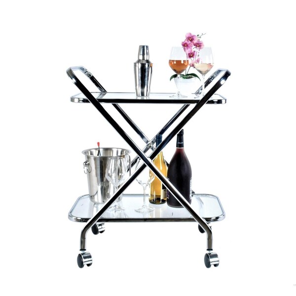 Chrome X-Shape Bar Cart 16.5 x 26.25 x 30.5 in.