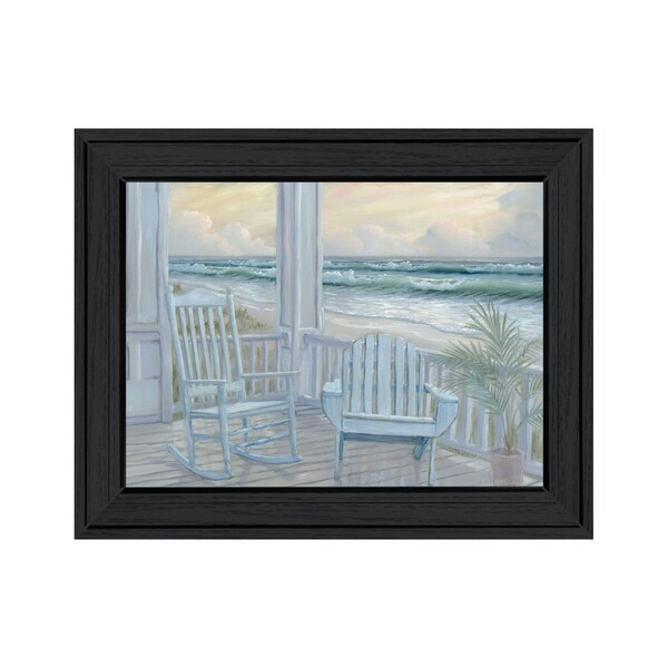 Bring some sizzle to your space with this eye-catching coastal porch black framed print wall art. This print is a visual artistic expression that allows you to decorate your space in style. Reproduced for you on wood, this hanging decorative accent will be a trendy and fashionable way to dress your walls in a rustic and modern farmhouse vibe. Adding this hanging wall art to your space to make your room feel more finished and attractive. Instantly liven up your space with this art that brings color and dimension to your walls. 15-inch H x 19-inch W x 1-inch D