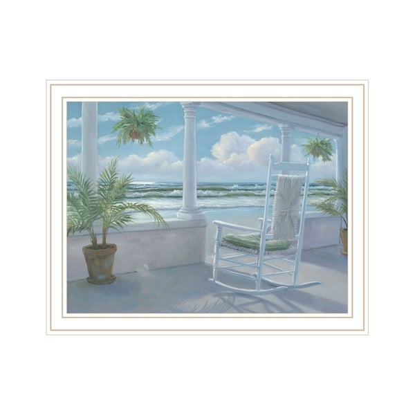 Bring some sizzle to your space with this eye-catching coastal porch white framed print wall art. This print is a visual artistic expression that allows you to decorate your space in style. Reproduced for you on wood, this hanging decorative accent will be a trendy and fashionable way to dress your walls in a rustic and modern farmhouse vibe. Adding this hanging wall art to your space to make your room feel more finished and attractive. Utilize this opportunity to create a focal point in the room with this fabulous wall decor option. 14-inch H x 18-inch W x 1-inch D