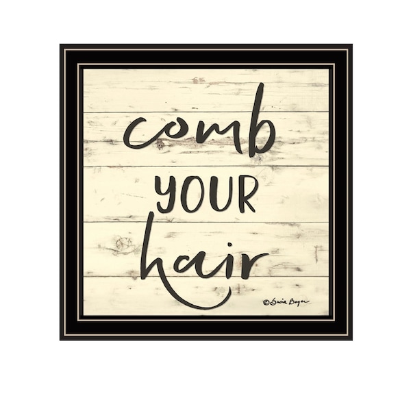 The comb your hair black framed print bathroom wall art is the perfect decorative accessory for your home. This print is a visual artistic expression that allows you to decorate your space in style. Reproduced for you on wood, this hanging decorative accent will be a trendy and fashionable way to dress your walls in a rustic and modern farmhouse vibe. Adding this hanging wall art to your space to make your room feel more finished and attractive. Utilize this opportunity to create a focal point in the room with this fabulous wall decor option. 14-inch H x 14-inch W x 1-inch D