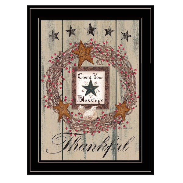 Add an air of fashion to your room and rejuvenate the space with this count your blessings 2 black framed print wall art. This print is a visual artistic expression that allows you to decorate your space in style. Reproduced for you on paper, this hanging decorative accent will be a trendy and fashionable way to dress your walls. Hang on your wall to add some up to date fashion and decoration. Instantly liven up your space with this art that brings color and dimension to your walls. 19-inch H x 15-inch W x 1-inch D