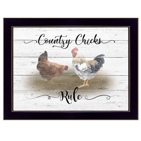 This country chicks rule 1 black framed print wall art will add a beautiful decorative accent to your decor. This print is a visual artistic expression that allows you to decorate your space in style. Reproduced for you on paper, this hanging decorative accent will be a trendy and fashionable way to dress your walls. Adding this hanging wall art to your space to make your room feel more finished and attractive. Utilize this opportunity to create a focal point in the room with this fabulous wall decor option. 14-inch H x 18-inch W x 1-inch D