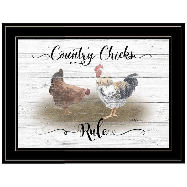 The country chicks rule 3 black framed print wall art is the perfect decorative accessory for your home. This print is a visual artistic expression that allows you to decorate your space in style. Reproduced for you on paper, this hanging decorative accent will be a trendy and fashionable way to dress your walls. Adding this hanging wall art to your space to make your room feel more finished and attractive. Instantly liven up your space with this art that brings color and dimension to your walls. 15-inch H x 19-inch W x 1-inch D