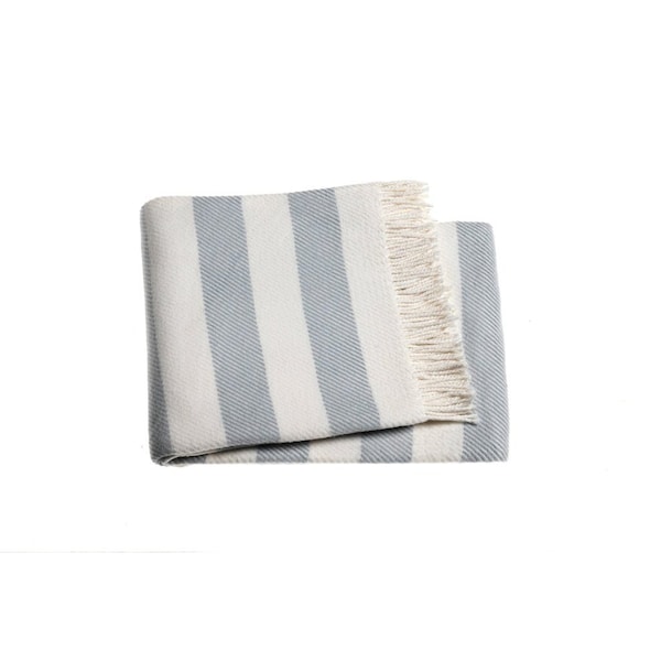 Cream and Sky Blue Slanted Stripe Fringed Throw Blanket