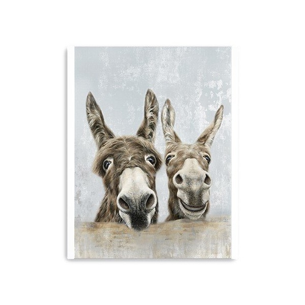 The cute donkeys canvas unframed print wall art is the perfect decorative accessory for your home. This print is a visual artistic expression that allows you to decorate your space in style. Printed on the highest quality gallery grade canvas using the French giclee technique, this fun portrait of two happy donkey faces is so cute, making it the perfect conversation starting art piece. Stretched over a natural pinewood frame, this colorful canvas wall art will give these adorable donkeys a chance to bring life and fun to your space. 24 inches H x 18 inches W x 1.25 inches D