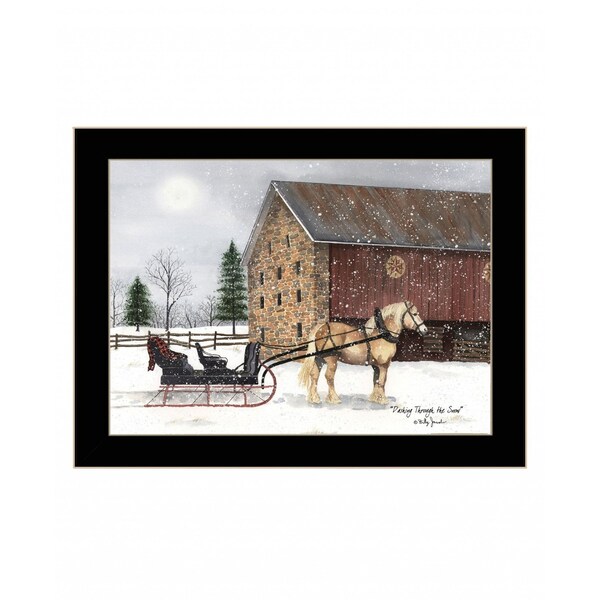 This dashing though the snow black framed print wall art will add a beautiful decorative accent to your decor. This print is a visual artistic expression that allows you to decorate your space in style. Reproduced for you on wood, this hanging decorative accent will be a trendy and fashionable way to dress your walls in a rustic and modern farmhouse vibe. Adding this hanging wall art to your space to make your room feel more finished and attractive. Utilize this opportunity to create a focal point in the room with this fabulous wall decor option. 14-inch H x 18-inch W x 1-inch D