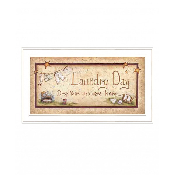 Add an air of fashion to your room and rejuvenate the space with this drop your drawers here white framed print bathroom wall art. This print is a visual artistic expression that allows you to decorate your space in style. Reproduced for you on wood, this hanging decorative accent will be a trendy and fashionable way to dress your walls in a rustic and modern farmhouse vibe. Hang on your wall to add some up to date fashion and decoration. Instantly liven up your space with this art that brings color and dimension to your walls. 20-inch H x 11-inch W x 1-inch D