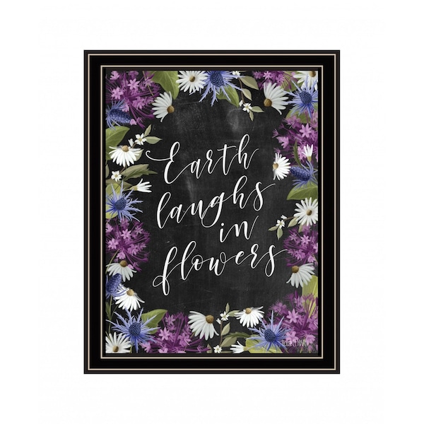 This earth laughs in flowers 1 black framed print wall art will add a beautiful decorative accent to your decor. This print is a visual artistic expression that allows you to decorate your space in style. Reproduced for you on wood, this hanging decorative accent will be a trendy and fashionable way to dress your walls in a rustic and modern farmhouse vibe. Adding this hanging wall art to your space to make your room feel more finished and attractive. Utilize this opportunity to create a focal point in the room with this fabulous wall decor option. 18-inch H x 14-inch W x 1-inch D