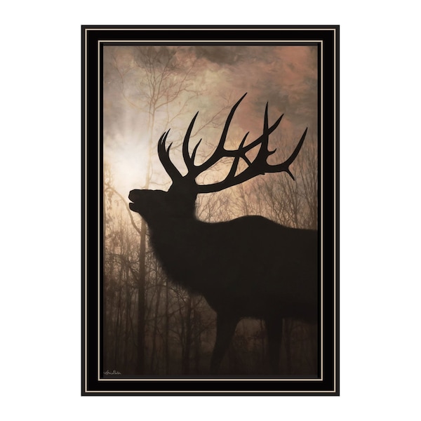 The elk sunrise black framed print wall art is the perfect decorative accessory for your home. This print is a visual artistic expression that allows you to decorate your space in style. Reproduced for you on wood, this hanging decorative accent will be a trendy and fashionable way to dress your walls in a rustic and modern farmhouse vibe. Hang on your wall to add some up to date fashion and decoration. Instantly liven up your space with this art that brings color and dimension to your walls. 20-inch H x 14-inch W x 1-inch D