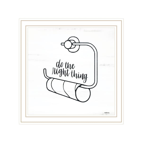 The empty toilet paper roll white framed print wall art is the perfect decorative accessory for your home. This print is a visual artistic expression that allows you to decorate your space in style. Reproduced for you on wood, this hanging decorative accent will be a trendy and fashionable way to dress your walls in a rustic and modern farmhouse vibe. Adding this hanging wall art to your space to make your room feel more finished and attractive. Utilize this opportunity to create a focal point in the room with this fabulous wall decor option. 14-inch H x 14-inch W x 1-inch D