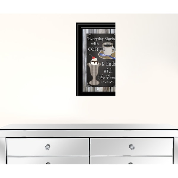 The everyday starts with coffee chalkboard framed 2 black framed print kitchen wall art is the perfect decorative accessory for your home. This print is a visual artistic expression that allows you to decorate your space in style. Reproduced for you on paper, this hanging decorative accent will be a trendy and fashionable way to dress your walls. Hang on your wall to add some up to date fashion and decoration. Utilize this opportunity to create a focal point in the room with this fabulous wall decor option. 15-inch H x 11-inch W x 1-inch D