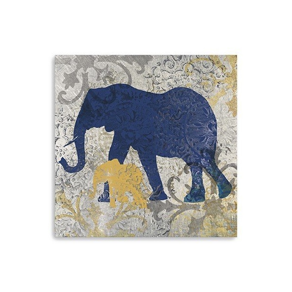 Unique and decorative, this exotic blue and gold elephant unframed print wall art will leave a lasting impression. This print is a visual artistic expression that allows you to decorate your space in style. Reproduced for you on canvas, this hanging decorative accent will be a trendy and fashionable way to dress your walls. Hang on your wall to add some up to date fashion and decoration. Utilize this opportunity to create a focal point in the room with this fabulous wall decor option. 30 inches H x 30 inches W x 1.25 inches D