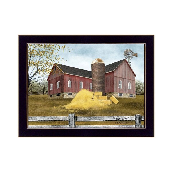 Add an air of fashion to your room and rejuvenate the space with this farm life 1 black framed print wall art. This print is a visual artistic expression that allows you to decorate your space in style. Reproduced for you on wood, this hanging decorative accent will be a trendy and fashionable way to dress your walls in a rustic and modern farmhouse vibe. Hang on your wall to add some up to date fashion and decoration. Instantly liven up your space with this art that brings color and dimension to your walls. 14-inch H x 18-inch W x 1-inch D