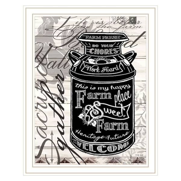 This farm sweet farm milk can white framed print wall art will add a beautiful decorative accent to your decor. Bring a little bit of the farm indoors when you hang this cow artwork. This print is a visual artistic expression that allows you to decorate your space in style. Reproduced for you on wood, this hanging decorative accent will be a trendy and fashionable way to dress your walls in a rustic and modern farmhouse vibe. Adding this hanging wall art to your space to make your room feel more finished and attractive. Instantly liven up your space with this art that brings color and dimension to your walls. 18-inch H x 14-inch W x 1-inch D