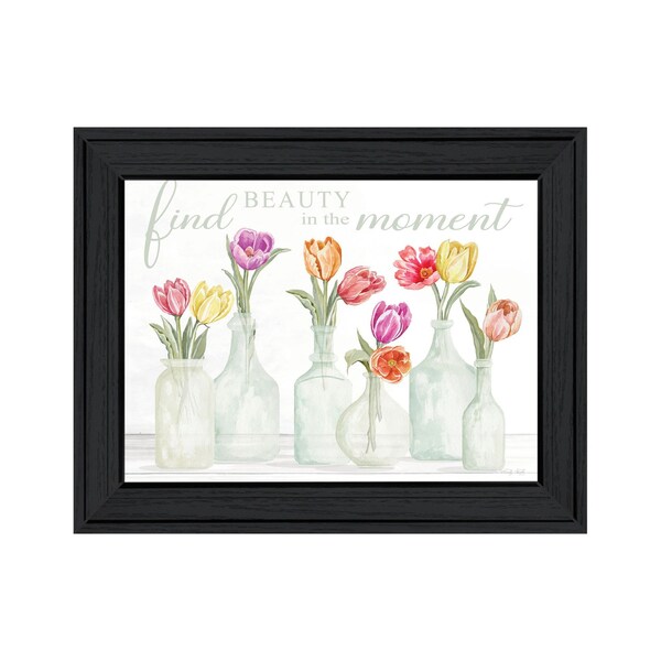 Add an air of fashion to your room and rejuvenate the space with this find beauty in the moment black framed print wall art. This print is a visual artistic expression that allows you to decorate your space in style. Reproduced for you on wood, this hanging decorative accent will be a trendy and fashionable way to dress your walls in a rustic and modern farmhouse vibe. Adding this hanging wall art to your space to make your room feel more finished and attractive. Utilize this opportunity to create a focal point in the room with this fabulous wall decor option. 15-inch H x 19-inch W x 1-inch D