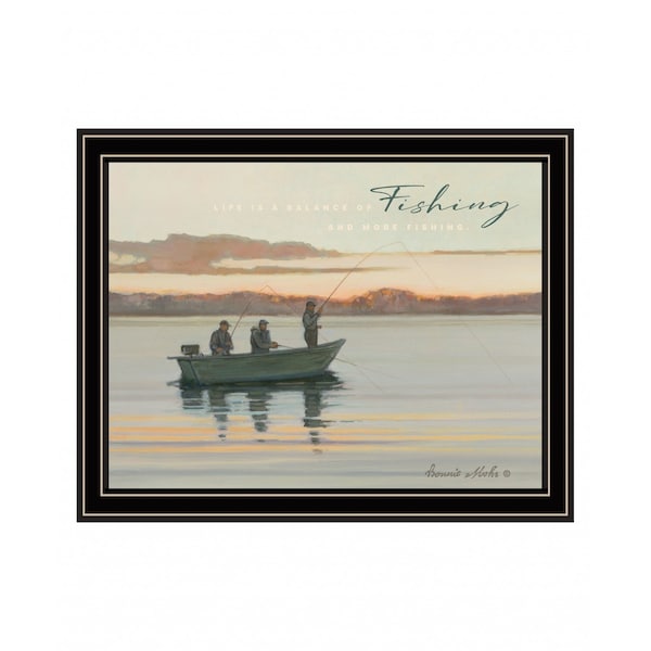 The fishing 1 black framed print wall art is the perfect decorative accessory for your home. This print is a visual artistic expression that allows you to decorate your space in style. Reproduced for you on wood, this hanging decorative accent will be a trendy and fashionable way to dress your walls in a rustic and modern farmhouse vibe. Hang on your wall to add some up to date fashion and decoration. Instantly liven up your space with this art that brings color and dimension to your walls. 14-inch H x 18-inch W x 1-inch D