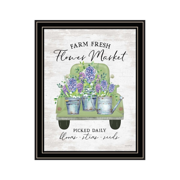 Unique and decorative, this flower market hyacinths black framed print wall art will leave a lasting impression. This print is a visual artistic expression that allows you to decorate your space in style. Reproduced for you on wood, this hanging decorative accent will be a trendy and fashionable way to dress your walls in a rustic and modern farmhouse vibe. Adding this hanging wall art to your space to make your room feel more finished and attractive. Instantly liven up your space with this art that brings color and dimension to your walls. 18-inch H x 14-inch W x 1-inch D