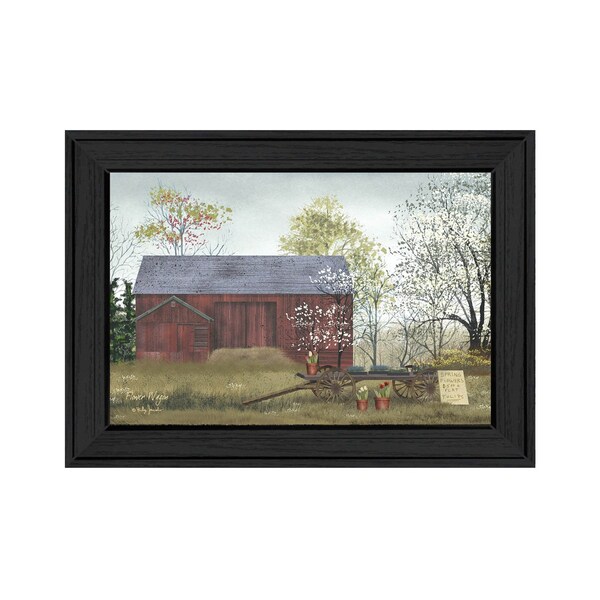 This flower wagon 3 black framed print wall art will add a beautiful decorative accent to your decor. This print is a visual artistic expression that allows you to decorate your space in style. Reproduced for you on paper, this hanging decorative accent will be a trendy and fashionable way to dress your walls. Adding this hanging wall art to your space to make your room feel more finished and attractive. Instantly liven up your space with this art that brings color and dimension to your walls. 15-inch H x 21-inch W x 1-inch D