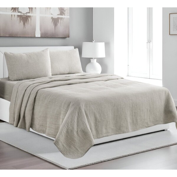 Four Piece Light Gray Linen Sheet Set