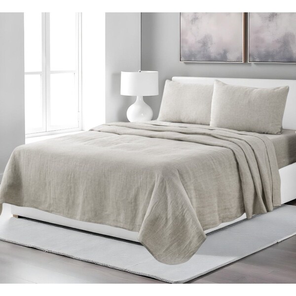 Four Piece Light Gray Linen Sheet Set
