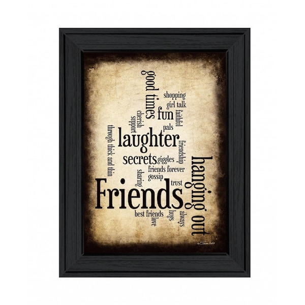 The friends 1 black framed print wall art is the perfect decorative accessory for your home. This print is a visual artistic expression that allows you to decorate your space in style. Reproduced for you on wood, this hanging decorative accent will be a trendy and fashionable way to dress your walls in a rustic and modern farmhouse vibe. Adding this hanging wall art to your space to make your room feel more finished and attractive. Utilize this opportunity to create a focal point in the room with this fabulous wall decor option. 21-inch H x 15-inch W x 1-inch D