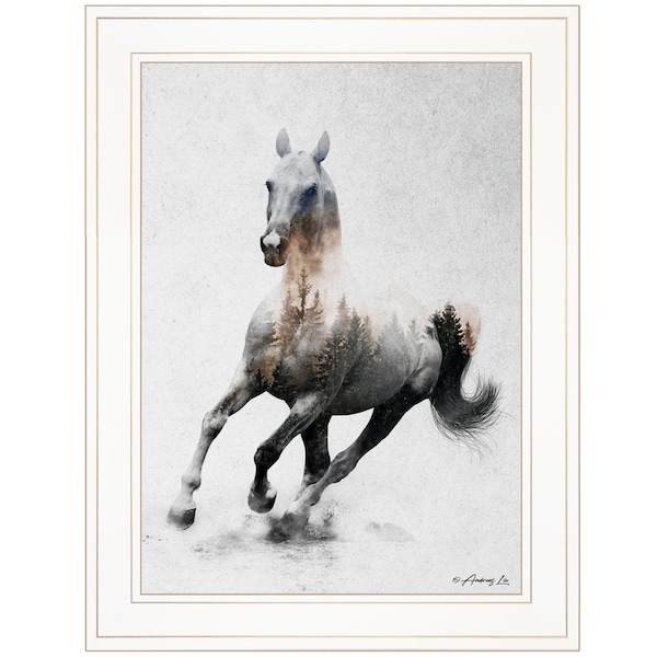 Unique and decorative, this galloping stallion 1 white framed print wall art will leave a lasting impression. Update your walls with this farm animal decor. This print is a visual artistic expression that allows you to decorate your space in style. Reproduced for you on paper, this hanging decorative accent will be a trendy and fashionable way to dress your walls. Hang on your wall to add some up to date fashion and decoration. Instantly liven up your space with this art that brings color and dimension to your walls. 15-inch H x 19-inch W x 1-inch D