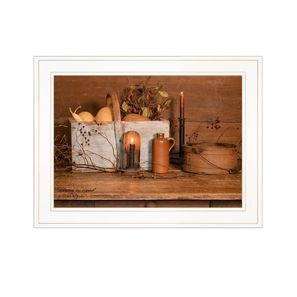 Add an air of fashion to your room and rejuvenate the space with this gathering the harvest 2 white framed print kitchen wall art. This print is a visual artistic expression that allows you to decorate your space in style. Reproduced for you on wood, this hanging decorative accent will be a trendy and fashionable way to dress your walls in a rustic and modern farmhouse vibe. Hang on your wall to add some up to date fashion and decoration. Instantly liven up your space with this art that brings color and dimension to your walls. 15-inch H x 19-inch W x 1-inch D