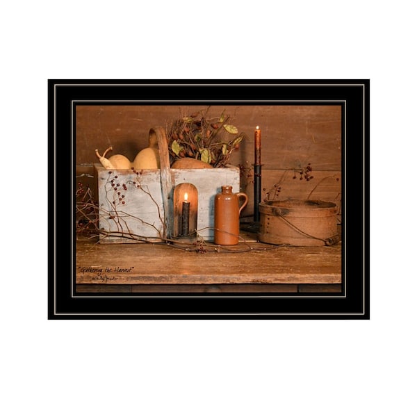 Bring some sizzle to your space with this eye-catching gathering the harvest 3 black framed print kitchen wall art. This print is a visual artistic expression that allows you to decorate your space in style. Reproduced for you on wood, this hanging decorative accent will be a trendy and fashionable way to dress your walls in a rustic and modern farmhouse vibe. Adding this hanging wall art to your space to make your room feel more finished and attractive. Utilize this opportunity to create a focal point in the room with this fabulous wall decor option. 15-inch H x 19-inch W x 1-inch D