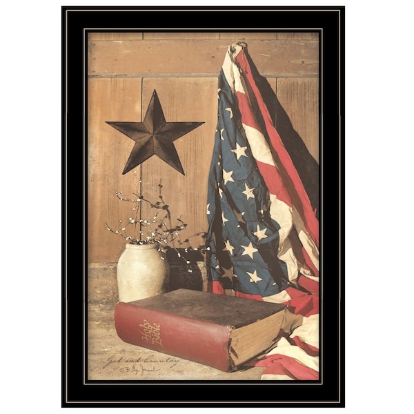 Unique and decorative, this god and country 6 black framed print wall art will leave a lasting impression. This print is a visual artistic expression that allows you to decorate your space in style. Reproduced for you on paper, this hanging decorative accent will be a trendy and fashionable way to dress your walls. Adding this hanging wall art to your space to make your room feel more finished and attractive. Utilize this opportunity to create a focal point in the room with this fabulous wall decor option. 21-inch H x 15-inch W x 1-inch D